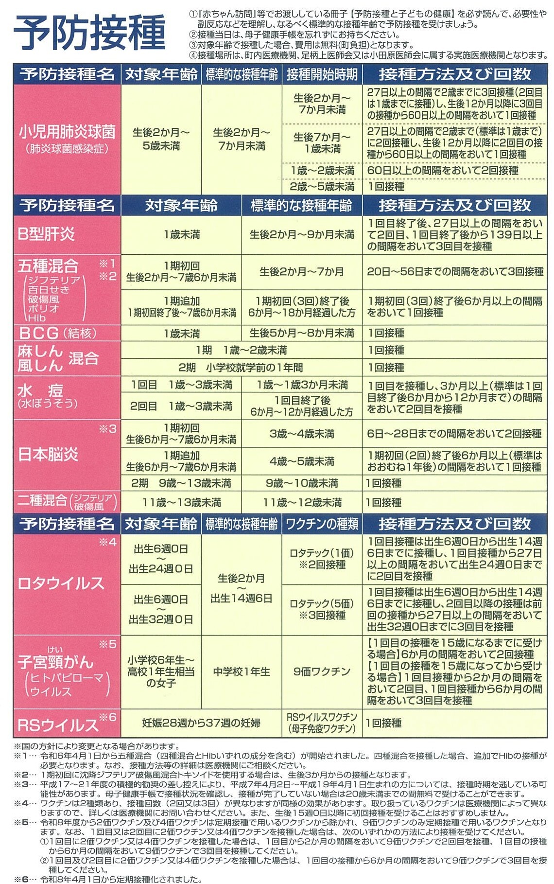 ※実施している予防接種は医療機関によって異なりますので、詳しくは医療機関にお問い合わせてください。