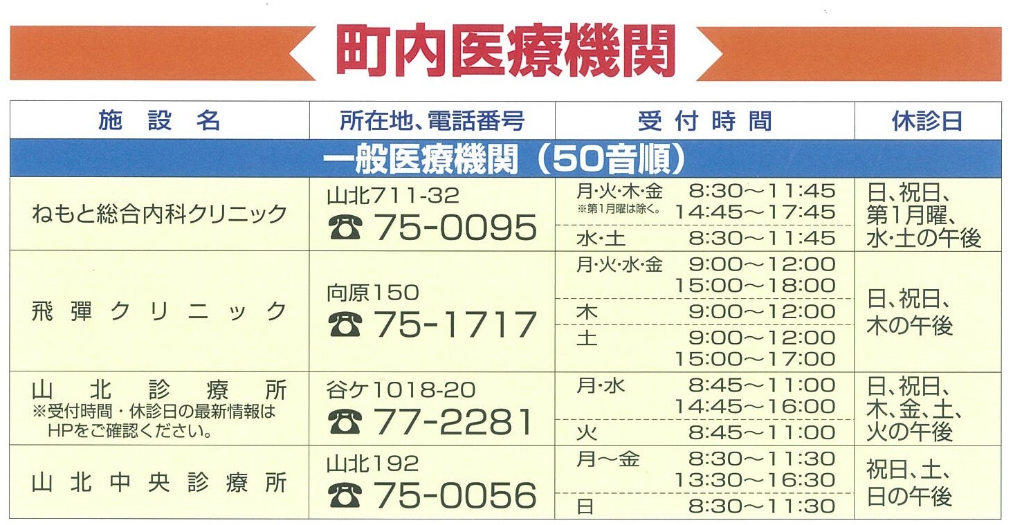 町内医療機関、足柄上医師会または小田原医師会に属する医療機関