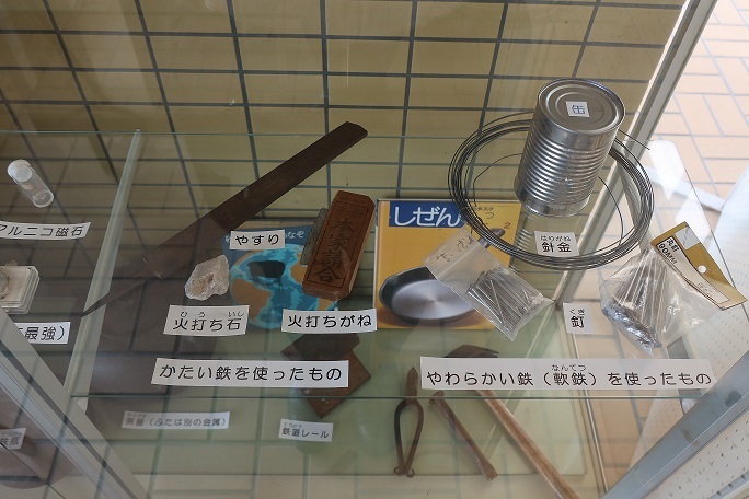 今回はそんな鉄を使ったものを展示しています。 鉄や鉱物の本が図書室にありますので合わせてご覧ください。