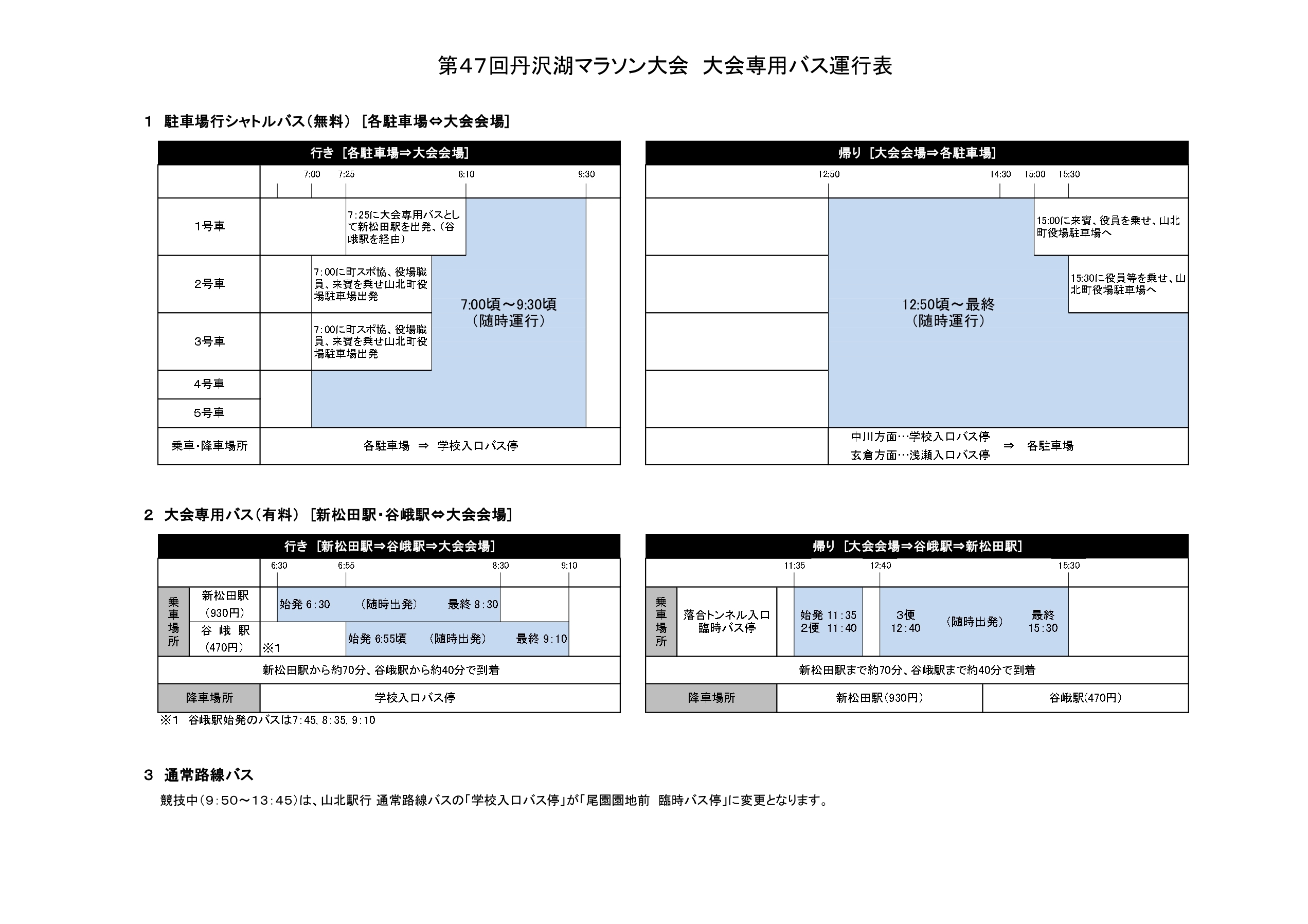 ・「中川駐車場」と記載された駐車券が届いた方は、当日、20km駐車場の案内看板に沿ってお進みください。