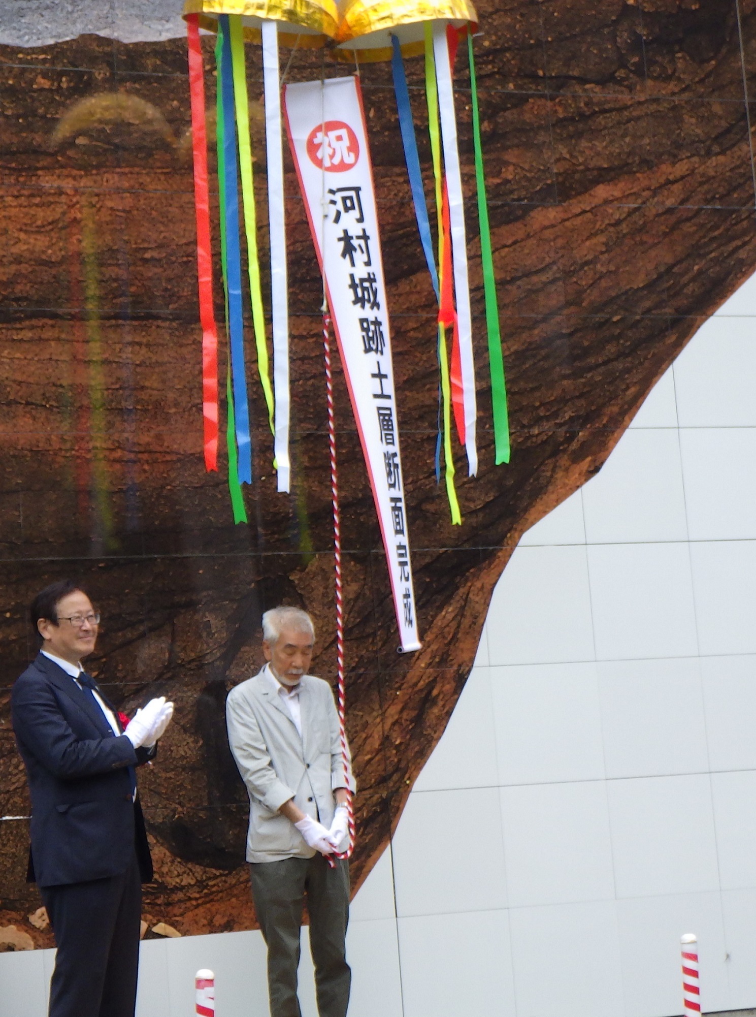 令和7年9月27日(土)の「河村城まつり」において土層断面タイルの完成披露を行いました。