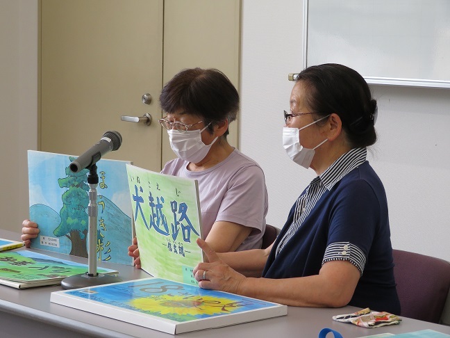 生涯学習センター図書室にある山北の歴史や民話を題材にした紙芝居を、紙芝居制作ボランティア「拍子木の会」の協力を得て動画配信しています。