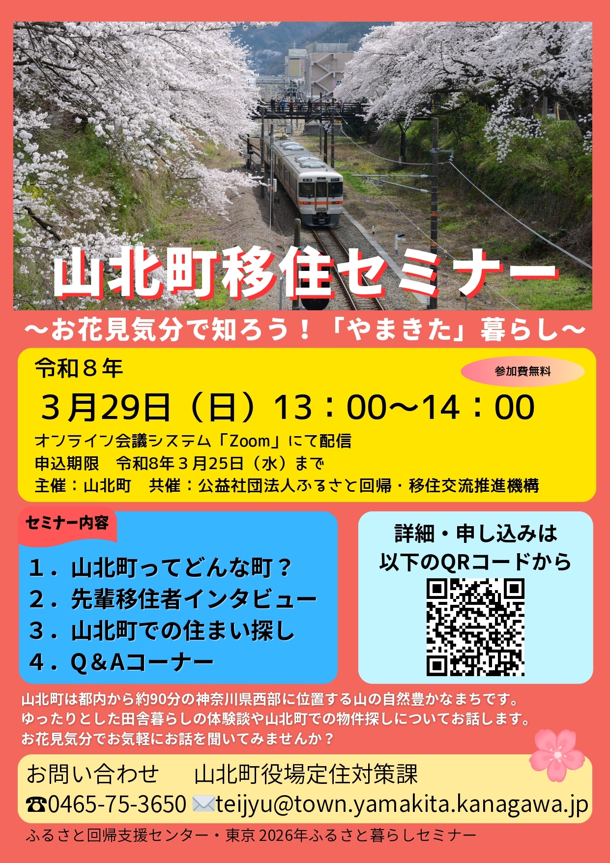 【3月29日( 日 )「令和8年度 山北町移住セミナー ~お花見気分で知ろう!「やまきた」暮らし~】