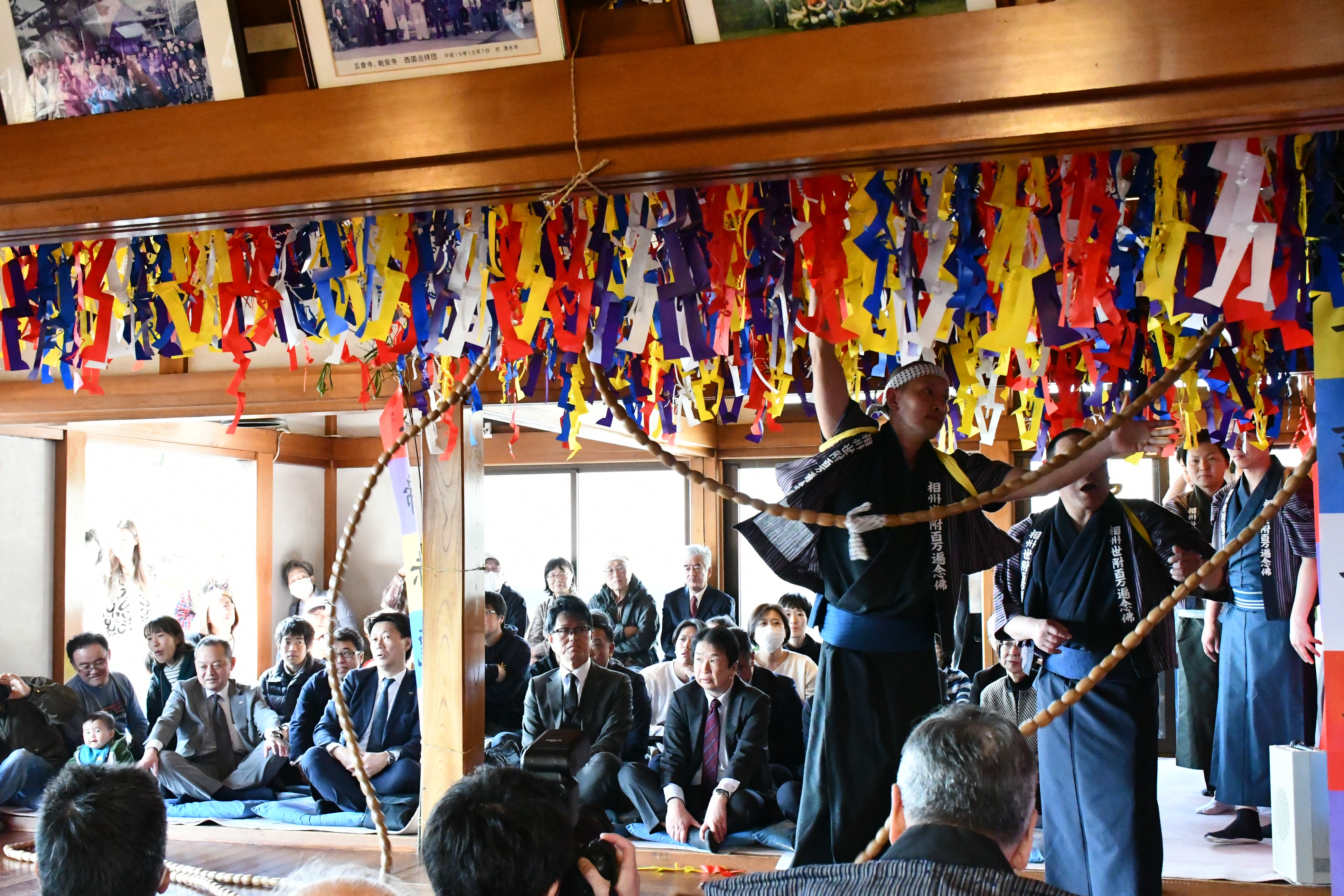 世附の百万遍念仏(よづくのひゃくまんべんねんぶつ)は、県指定無形民俗文化財であり、約600年前から行われていたと伝承されている念仏信仰で、毎年2月15日から17日まで山北町世附の能安寺で行われていましたが、三保ダムの建設に伴い、現在では山北町向原に移転された能安寺で毎年2月中旬の土曜日・日曜日に行われています。